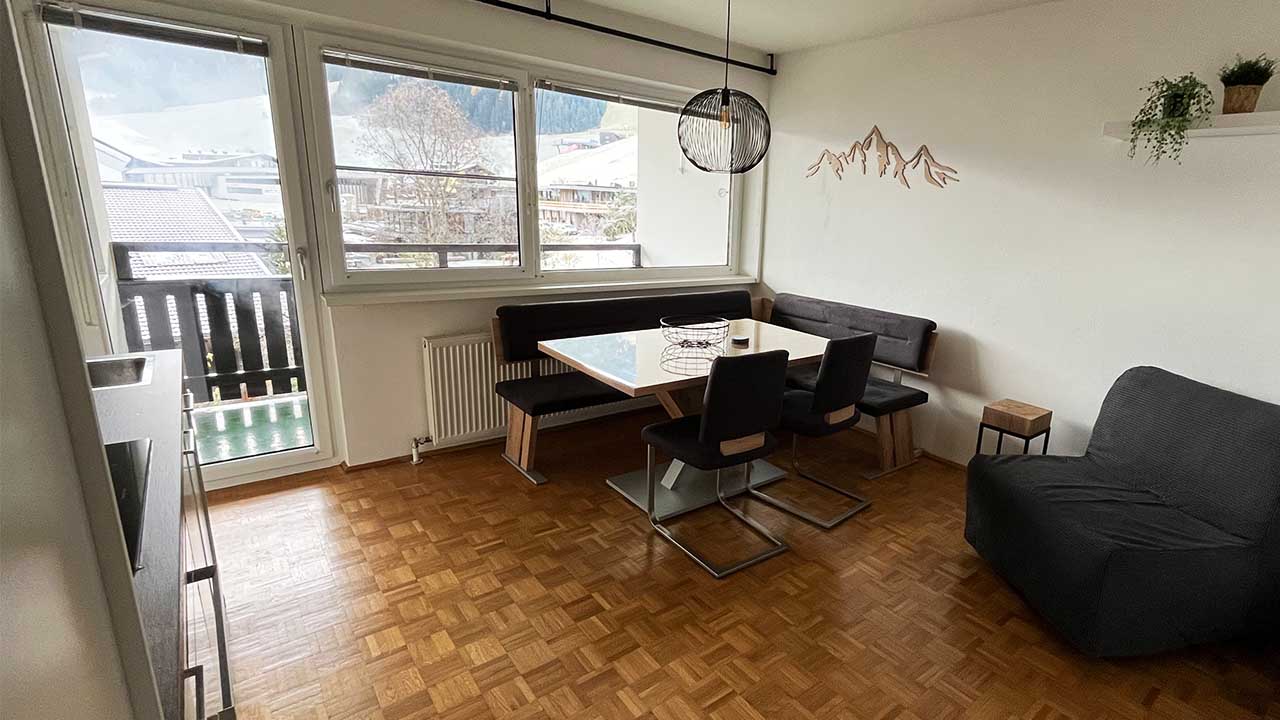 Ons appartement Zwölferzicht ligt op 1.017 meter hoogte en is ideaal voor vier personen (vijf is mogelijk). De woonkamer heeft een Oostenrijkse eethoek, een hoekbank en een open keuken. Er zijn twee slaapkamers: één met een tweepersoonsbed en één met een stapelbed. Perfect voor gezinnen.