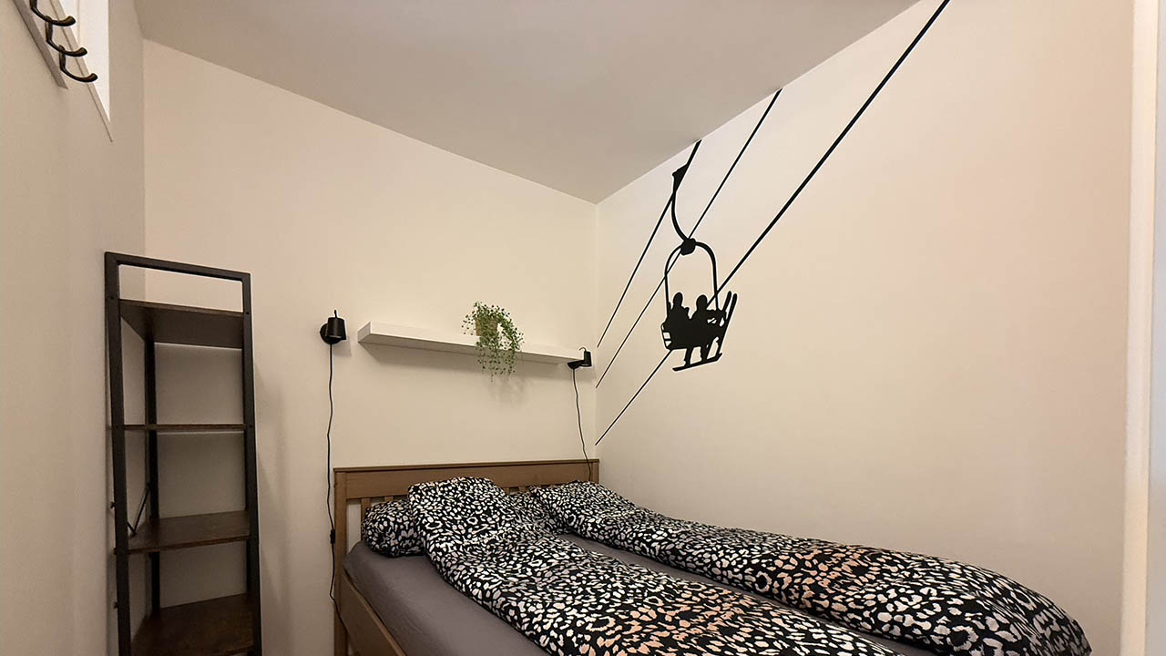 Er zijn twee slaapkamers: een ruime tweepersoonskamer en een knusse kamer met een stapelbed, favoriet bij kinderen! De keuken is volledig ingericht met alles wat je nodig hebt: een grote koelkast met vriezer, oven, magnetron, vaatwasser, waterkoker, broodrooster en natuurlijk een koffiezetapparaat. Of je nu een snelle pasta kookt, uitgebreid wilt tafelen of ’s ochtends broodjes afbakt, het voelt als thuis, maar dan met berglucht.