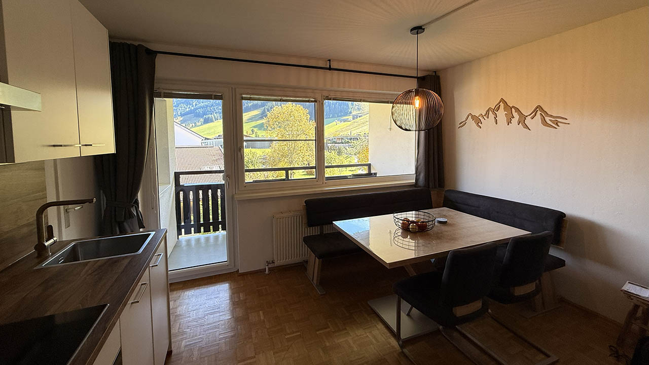 De gezellige woonkamer is het hart van het appartement. Met een typisch Oostenrijkse eethoek is dit dé plek om samen te eten, spelletjes te doen of na te praten na een dag in de bergen. De warme inrichting zorgt voor een huiselijke sfeer. Dankzij de extra slaapbank is het appartement geschikt voor maximaal vijf personen. Ideaal voor gezinnen die comfort en sfeer zoeken.